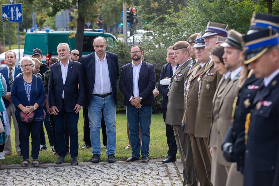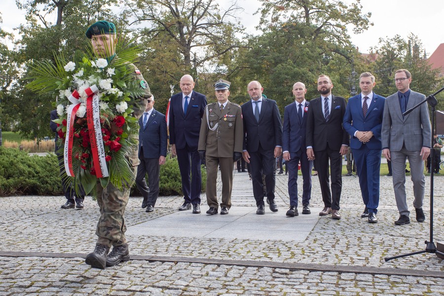 Marszałek Piotr Całbecki, wicemarszałek Zbigniew Ostrowski i sekretarz województwa Marek Smoczyk uczestniczyli w piątkowych (1 września) obchodach rocznicy wybuchu drugiej wojny światowej.