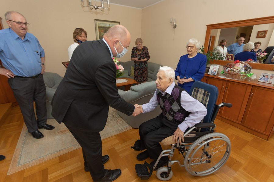 Marszałek Piotr Całbecki z urodzinową wizytą u pana Piotra Bogorodzia, fot. Mikołaj Kuras dla UMWKP