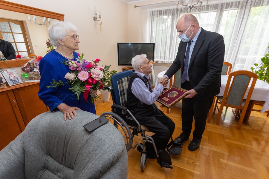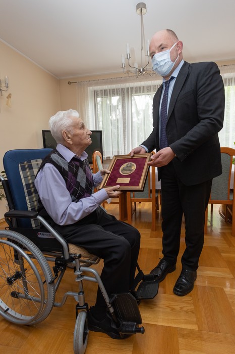 – Gratuluję panu Piotrowi pięknego życiorysu, pięknej postawy w chwilach próby, a także znakomitej formy w tak sędziwym wieku – mówi marszałek Piotr Całbecki. – Dwustu lat i tylko jasnych dni!