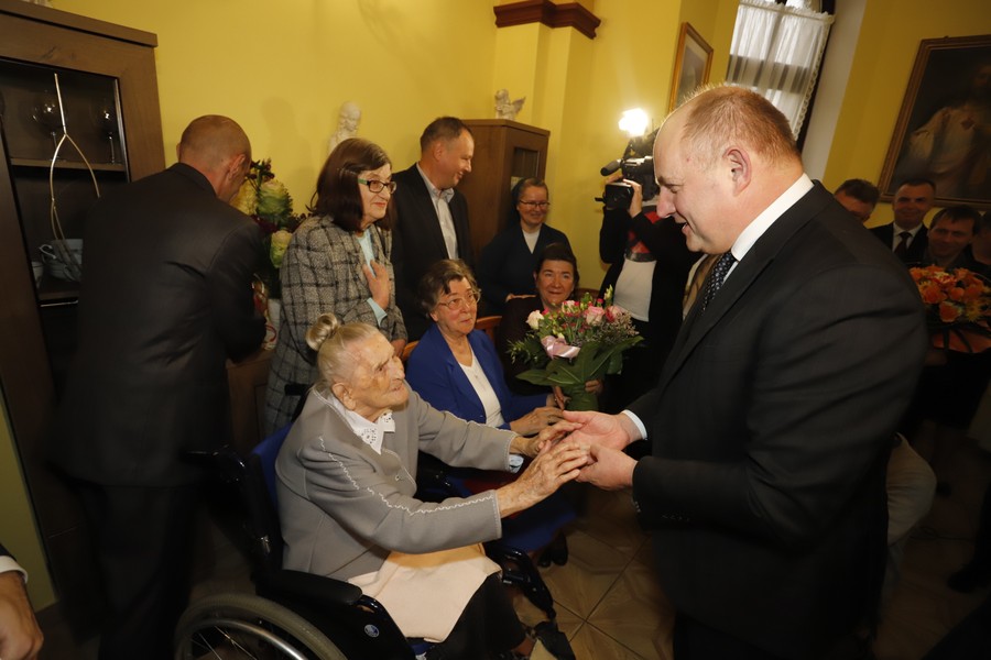 Elżbieta Rogala, jedna z najstarszych mieszkanek województwa 3 listopada skończyła 108 lat. Z tej okazji marszałek Piotr Całbecki odwiedził 4 listopada jubilatkę w Domu Pomocy Społecznej w Chełmnie i, w imieniu samorządu województwa, przekazał życzenia urodzinowe. Pani Rogala jest jedną z osób, które otrzymały Unitas Durat Palatinatus Cuiaviano-Pomeraniensis w ramach naszej akcji honorowania osób, które swoją pamięcią sięgają do początków odrodzonej ojczyzny, zorganizowanej z okazji ubiegłorocznej setnej rocznicy odzyskania przez Polskę niepodległości.