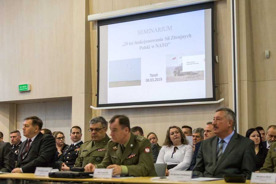 Dziś (8 marca) w Urzędzie Marszałkowskim odbyło się seminarium „20 lat funkcjonowania Sił Zbrojnych Polski w NATO”. Wydarzenie zorganizował samorząd województwa we współpracy z toruńskim Stowarzyszeniem Polskich Artylerzystów. W spotkaniu udział wzięli dowódcy i przedstawiciele jednostek i instytucji wojskowych, między innymi Centrum Szkolenia Artylerii i Uzbrojenia, 1 Pomorskiej Brygady Logistycznej w Bydgoszczy, Centrum Doktryn i Szkolenia, 6 Samodzielnego Oddziału Geograficznego w Toruniu, 12 Wojskowego Oddziału Gospodarczego w Toruniu, 2 Pułku Inżynieryjnego w Inowrocławiu, 4. Brodnickiego Pułku Chemicznego, 8 Kujawsko-Pomorskiej Brygady Obrony Terytorialnej, Centrum Szkolenia Sił Połączonych NATO (JFTC). Gośćmi spotkania byli także stacjonujący w Toruniu żołnierze amerykańscy z podpułkownikiem Ivenem T. Sugai (więcej informacji o wizycie żołnierzy w naszym regionie).