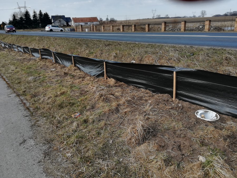 Na odcinku blisko 500 metrów ustawiono już specjalne bariery z agrowłókniny (płotki herpetologiczne). Przy nich wkopywane są wiadra-pułapki. Akcja została uzgodniona z Regionalną Dyrekcją Ochrony Środowiska.
