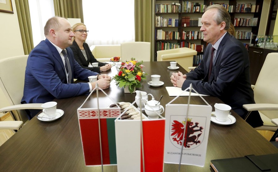 Marszałek Piotr Całbecki podejmował 18 listopada w Toruniu ambasadora Republiki Białorusi Aleksandra Averyanova. Tematem spotkania były przede wszystkim kwestie związane z wymianą gospodarczą. Kujawsko-Pomorskie od 2005 roku prowadzi współpracę międzyregionalną z białoruskim Obwodem Mohylewskim.