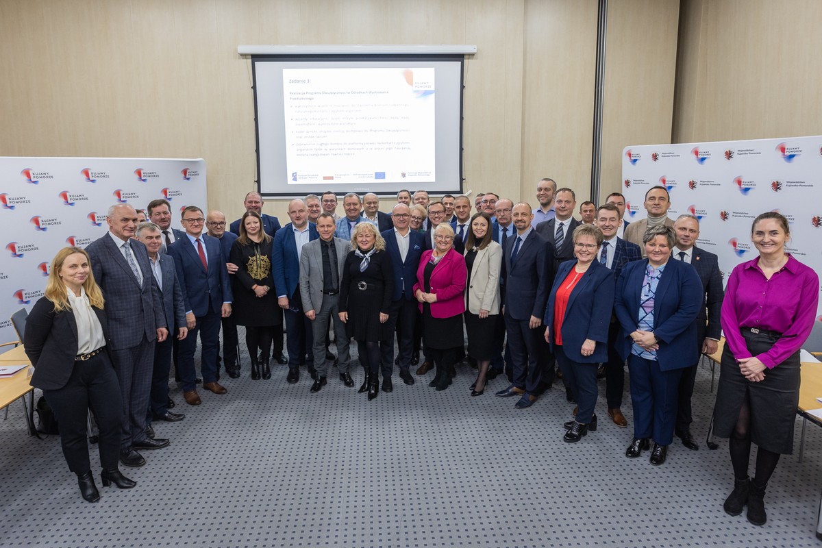 Marszałek Piotr Całbecki i członek zarządu województwa Sławomir Kopyść spotkali się dziś (17 listopada) z włodarzami gmin i miast prowadzących placówki przedszkolne w naszym regionie, którzy podpisali porozumienie w sprawie udziału w pilotażowym projekcie „Dwujęzyczne przedszkolaki Kujaw i Pomorza”. Realizacja zadania możliwa jest dzięki środkom unijnym Fundusze Europejskie dla Kujaw i Pomorza 2021-27.
