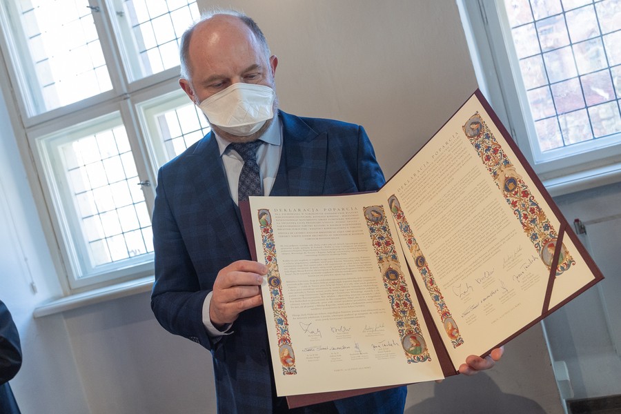 – Wiemy, że machina legislacyjna ruszyła, śledzimy ją. Zaproponowaliśmy, by rozważyć możliwość skorzystania z kopii tego rękopisu, ale wykonamy ją tylko wtedy, gdy rzeczywiście takie będzie oczekiwanie. Myślę, że decydujący głos będzie tu miało Ministerstwo Kultury i Dziedzictwa Narodowego; mam nadzieję, że będzie to decyzja o odstąpieniu od tego pomysłu – powiedział dziennikarzom po podpisaniu deklaracji marszałek Piotr Całbecki.