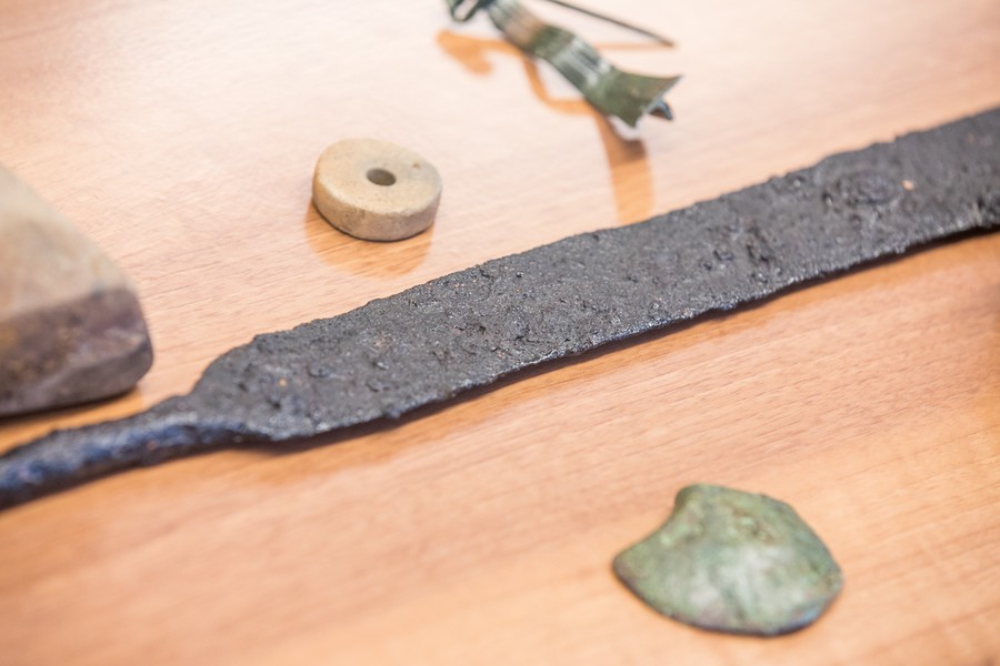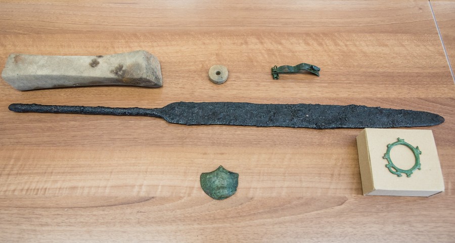 Podczas konferencji zaprezentowano wydobyte spod ziemi eksponaty, przede wszystkim elementy warsztatu tkackiego, ale też ozdobioną wizerunkami kaczek zawieszkę, rozpoznaną jako kobieca biżuteria z kręgu kultury czerniachowskiej (III-V wiek, m.in. Ukraina), będącej archeologicznym śladem wędrówki Gotów w kierunku Morza Czarnego. Wszystkie trafią teraz do Krakowa, gdzie przeprowadzone zostaną specjalistyczne badania oraz modele artefaktów w technologii 3D.
