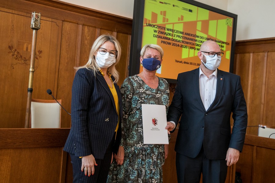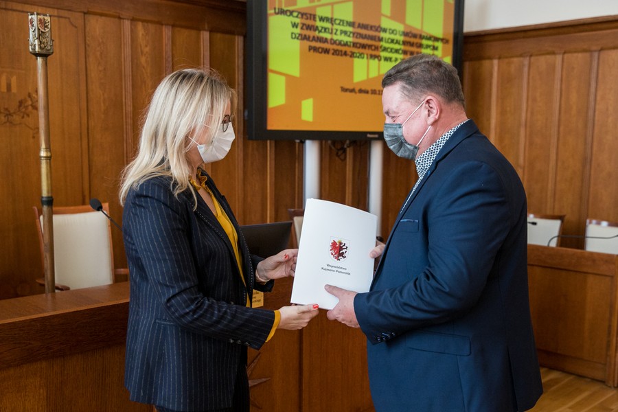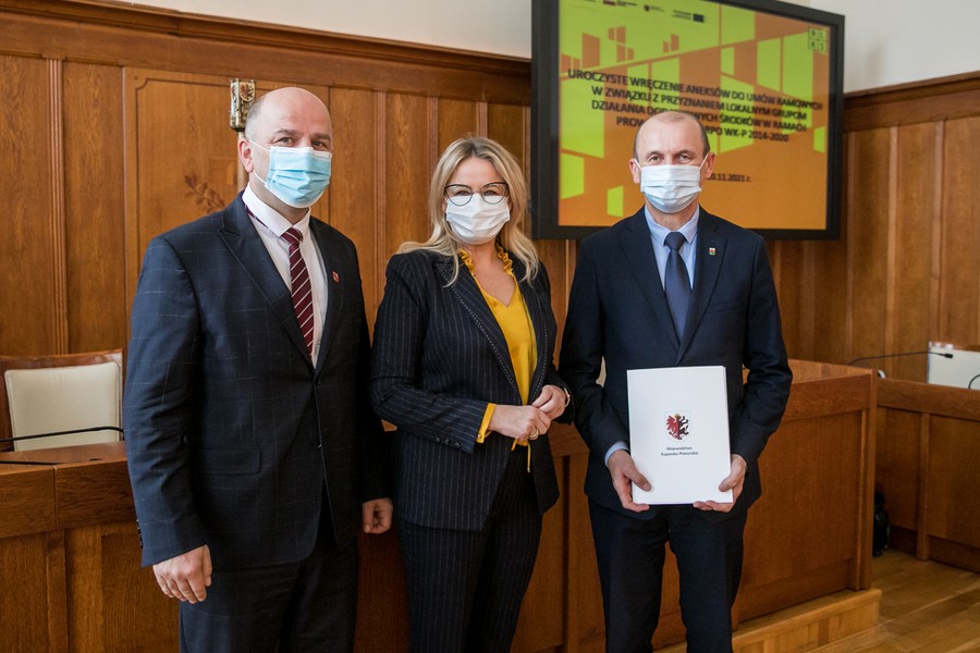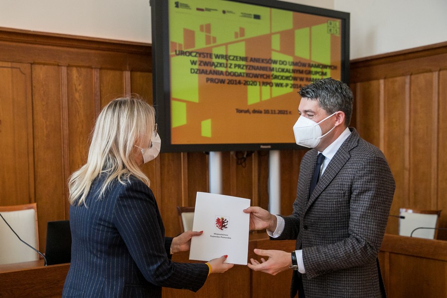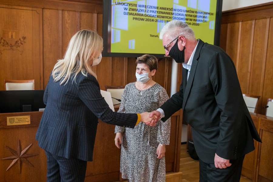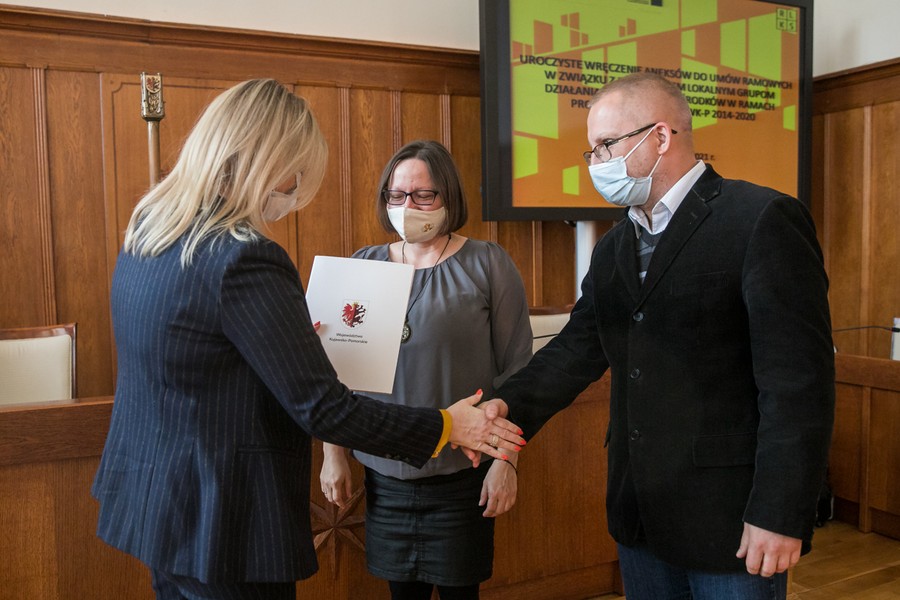 Prawie 50 milionów złotych zostanie przekazanych na uruchomienie nowych firm, rozwój lokalnej infrastruktury turystycznej i rekreacyjnej oraz aktywizację mieszkańców terenów wiejskich 20 Lokalnym Grupom Działania z naszego regionu. W środę (10 listopada) w Urzędzie Marszałkowskim odbyło się uroczyste wręczenie aneksów do ,,umów ramowych” zawartych między Zarządem Województwa a LGD. Przedstawicieli grup przywitał marszałek Piotr Całbecki, umowy wręczyła członkini zarządu województwa Aneta Jędrzejewska.