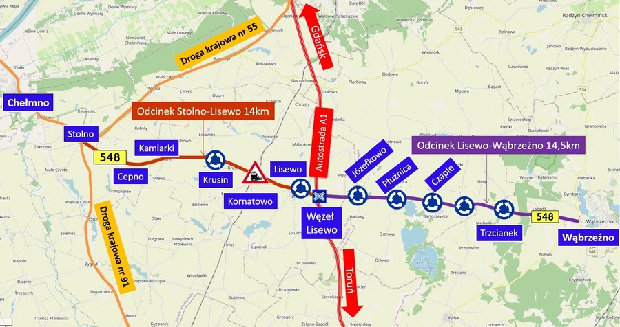 Droga wojewódzka nr 548 ma kluczowe znaczenie dla połączenia północnej części regionu (Świecia, Chełmna, Brodnicy i Wąbrzeźna) z autostradą A1 (węzeł w Lisewie). Wartość całej inwestycji na blisko 29-kilometrowej trasie ze Stolna do Wąbrzeźna to 177 milionów złotych. Jest ona współfinansowana ze środków Unii Europejskiej w ramach Regionalnego Programu Operacyjnego Województwa Kujawsko-Pomorskiego na lata 2014-2020.