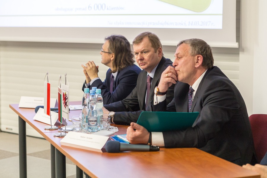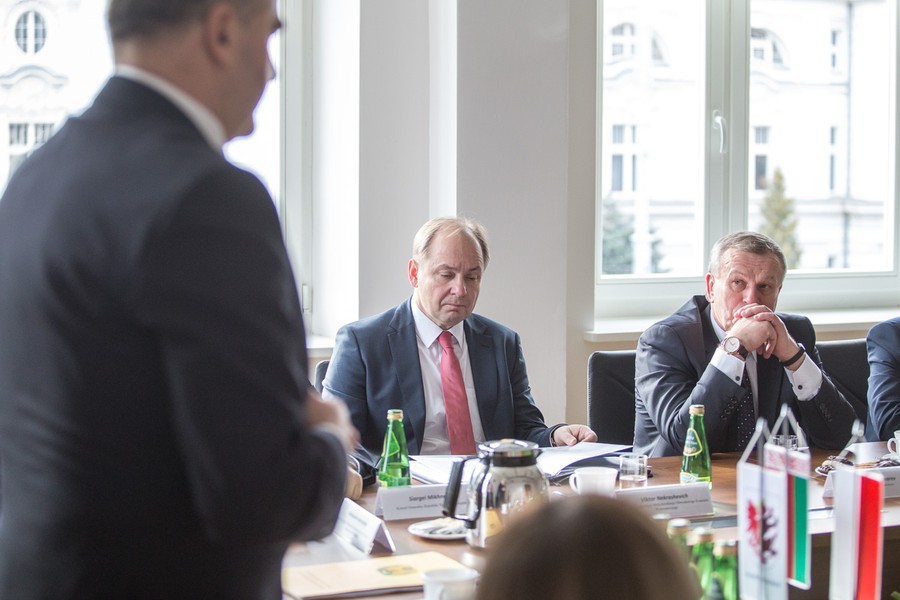 Naszych białoruskich partnerów podejmowali 13 marca w Urzędzie Marszałkowskim przewodniczący sejmiku województwa Ryszard Bober, członek zarządu województwa Sławomir Kopyść i sekretarz województwa Marek Smoczyk. Przedmiotem rozmów były relacje gospodarcze. W spotkaniu uczestniczył także radny województwa Waldemar Przybyszewski.