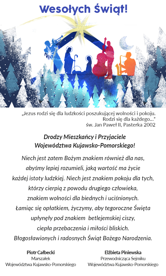 Życzenia świąteczne marszałka Piotra Całbeckiego i przewodniczącej sejmiku województwa Elżbiety Piniewskiej.