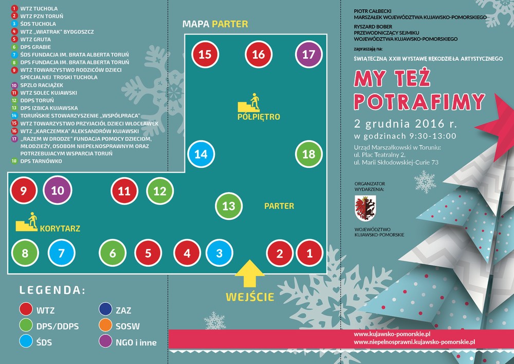 Połączona z kiermaszem 23. przedświąteczna wystawa rękodzieła osób niepełnosprawnych „My też potrafimy” odbyła się 2 grudnia w Urzędzie Marszałkowskim. Wydarzeniu towarzyszyła konferencja podsumowująca kampanię społeczno-informacyjną „Rodzicielstwo bez barier”.