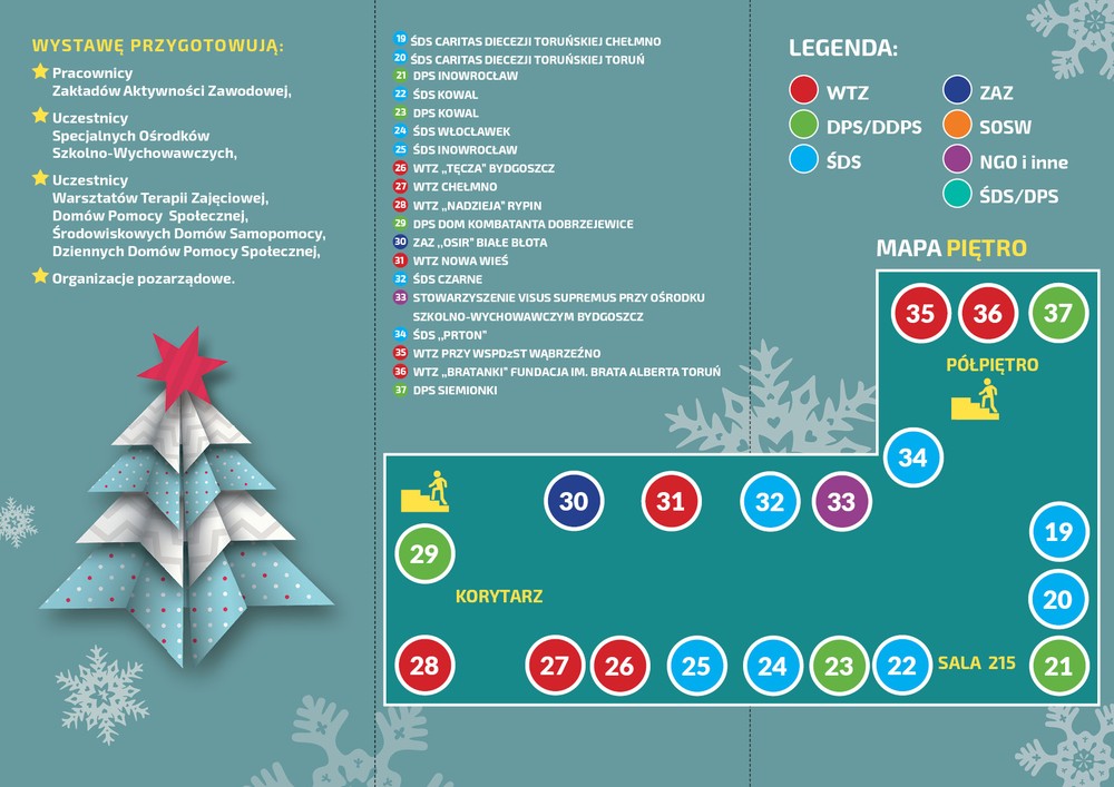 Podczas wystawy prezentowane były bombki, stroiki, drzewka, figurki i wiele innych ozdób. W ich przygotowaniu uczestniczyło w sumie ponad 160 osób niepełnosprawnych i ich opiekunów z 41 placówek z całego regionu – warsztatów terapii zajęciowej, domów pomocy i samopomocy społecznej, ośrodków szkolno-wychowawczych oraz zakładów aktywności zawodowej (lista placówek). Całkowity dochód ze sprzedaży zostanie przeznaczony na rehabilitację osób niepełnosprawnych.