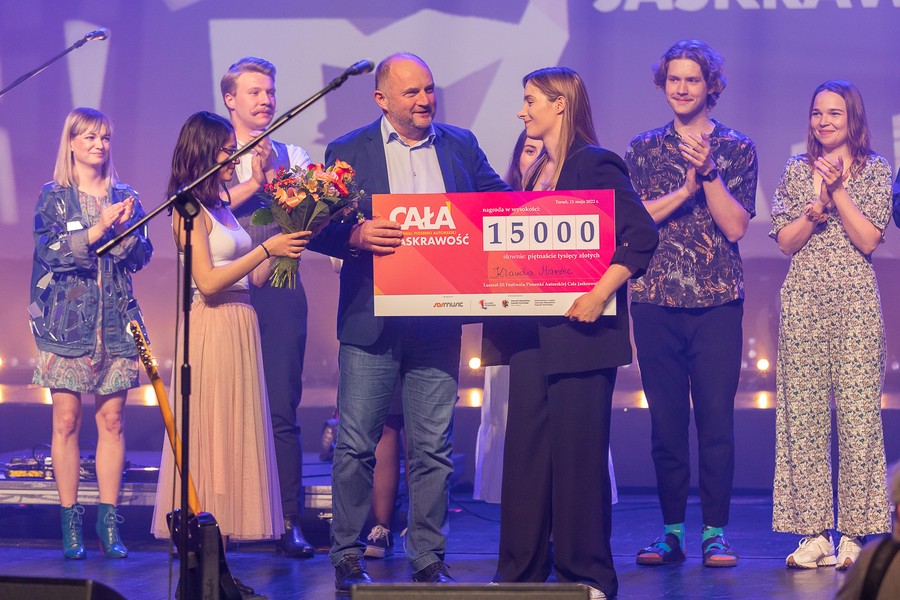 Utalentowani uczestnicy warsztatów muzyczno-poetyckich wystąpili wczoraj (11 maja) w toruńskim Centrum Kulturalno-Kongresowym Jordanki podczas koncertu finałowego Festiwalu Piosenki Autorskiej „Cała Jaskrawość”. Gościem specjalnym był nominowany do Fryderyków 2022 Błażej Król. Nagrodę wręczyli marszałek Piotr Całbecki i przewodnicząca sejmiku województwa Elżbieta Piniewska.