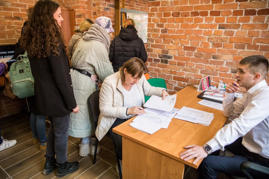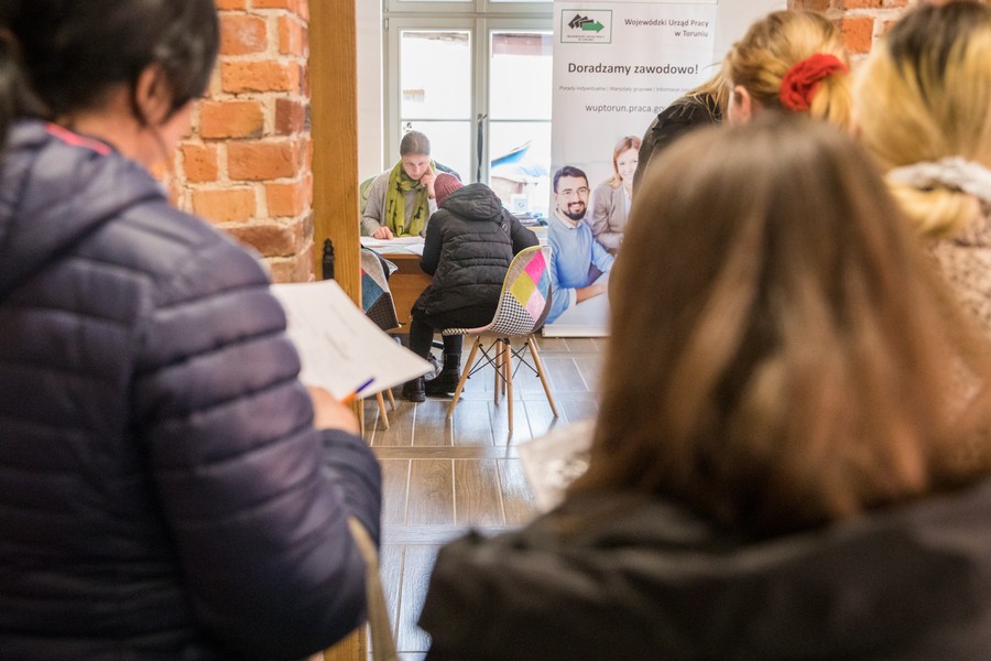 Українські біженці в інформаційно-консультативному пункті в Торуні, фото. Анджей Гоінськи /UMWKP.