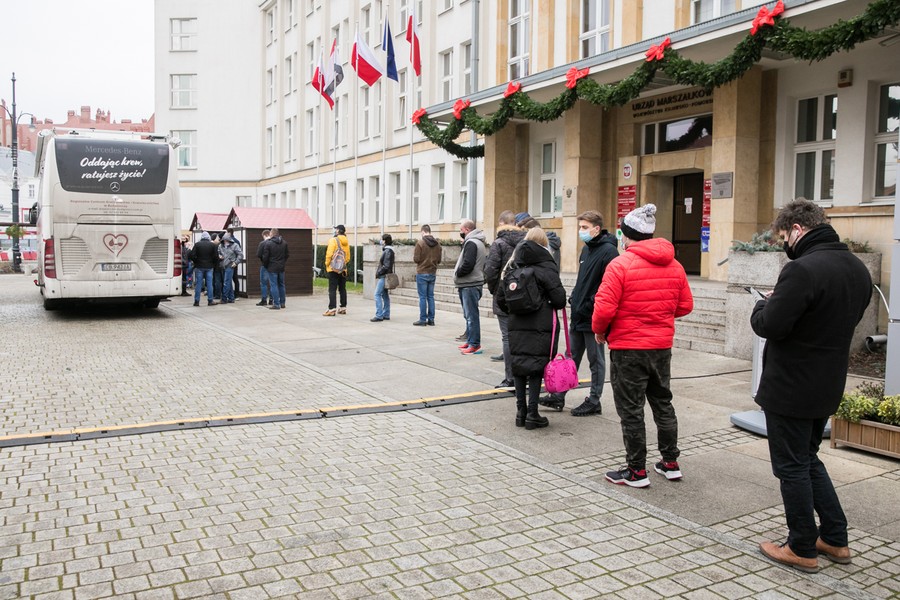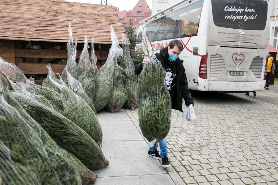 W obliczu epidemii Covid-19 wzrasta zapotrzebowanie na krew niezbędną do ratowania ludzkiego życia. Po raz ostatni w tym roku specjalny ambulans Regionalnego Centrum Krwiodawstwa i Krwiolecznictwa w Bydgoszczy, w którym można honorowo oddać krew, stanął na placu Teatralnym przed Urzędem Marszałkowskim w Toruniu. Dla dawców, którzy w czwartek (17 grudnia) wzięli udział w akcji, mieliśmy niespodziankę – dzięki uprzejmości Regionalnej Dyrekcji Lasów Państwowych w Toruniu rozdawaliśmy choinki.