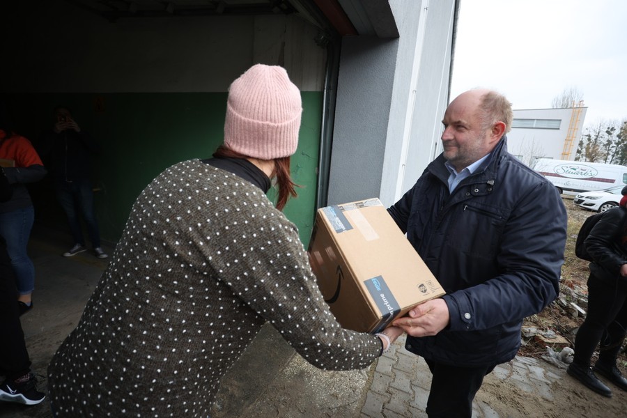 Протягом багатьох тижнів Уряд Маршалківський координував збір дарів для біженців з України та для українців у зруйнованій війною країні, в тому числі закордонні транспортні засоби матеріальної допомоги. Ми вже отримали подарунки з Великобританії (зібрані, зокрема, благодійною організацією Tippy Toes Baby Bank і компанією Recycling Lives – 8 вантажівок, повних необхідних продуктів), а також з Франції та Ірландії. Натуральну підтримку надають також вітчизняні компанії, в т.ч. InAutom з Коронова. У гуманітарних колонах ми відправили через східний кордон 22 повні вантажівки та мікроавтобуси (колони двічі організувала Волонтерська служба порятунку на воді). Допомога надійшла до Хмельницької та Житомирської областей, а також до Вінниці, Рівного, Львова, Луцька та Києва.