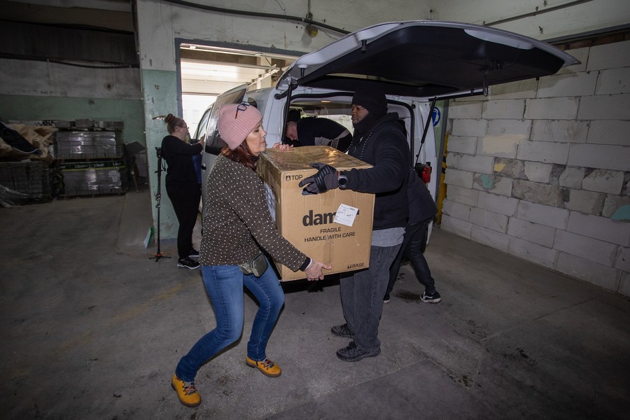 Косметика, засоби гігієни, продукти харчування, спальні мішки, ковдри та дуже потрібне весняне взуття, запаковані в чотири великі фургони, призначені для біженців від війни, які перебувають у нашому регіоні, а також частина з яких буде відправлена іншим гуманітарним транспортом в Україну. Розвантажувати дари допомагають американські солдати 1-го батальйону 5-го полку польової артилерії «Hamilton’s Own» та представники дивізіону цивільно-військового співробітництва армії США, що дислокується в нашому регіоні.