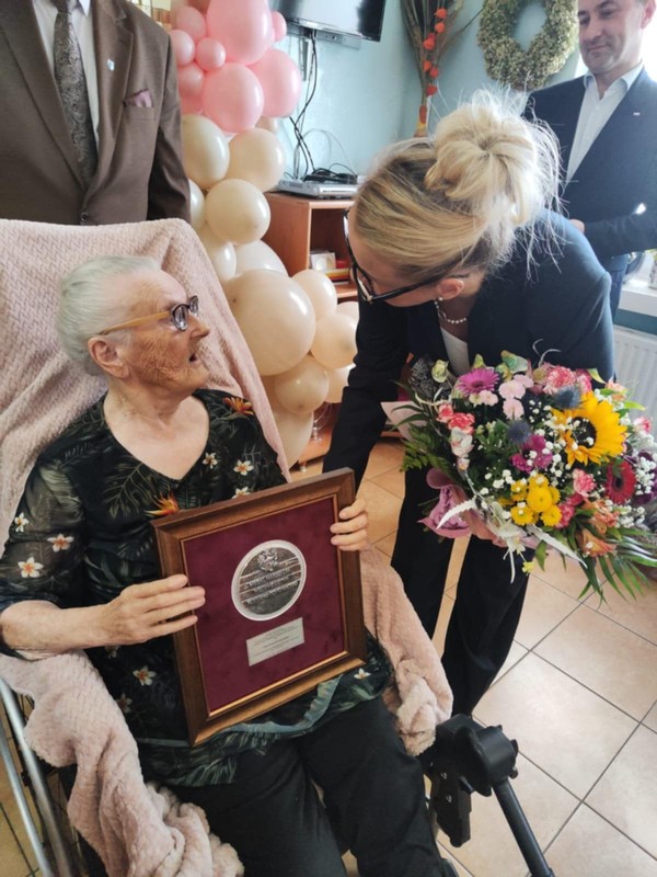 Zawsze pełna energii i życzliwości – jej słynne babki piaskowe, amoniaczki i domowe ciasteczka pamięta cała rodzina. Była też znana z pięknych robótek ręcznych. Dziś pozostaje pogodna, kontaktowa i bardzo związana z rodziną. Jubilatkę odwiedziła wicemarszałek województwa Aneta Jędrzejewska i przedstawiciele lokalnych władz.
