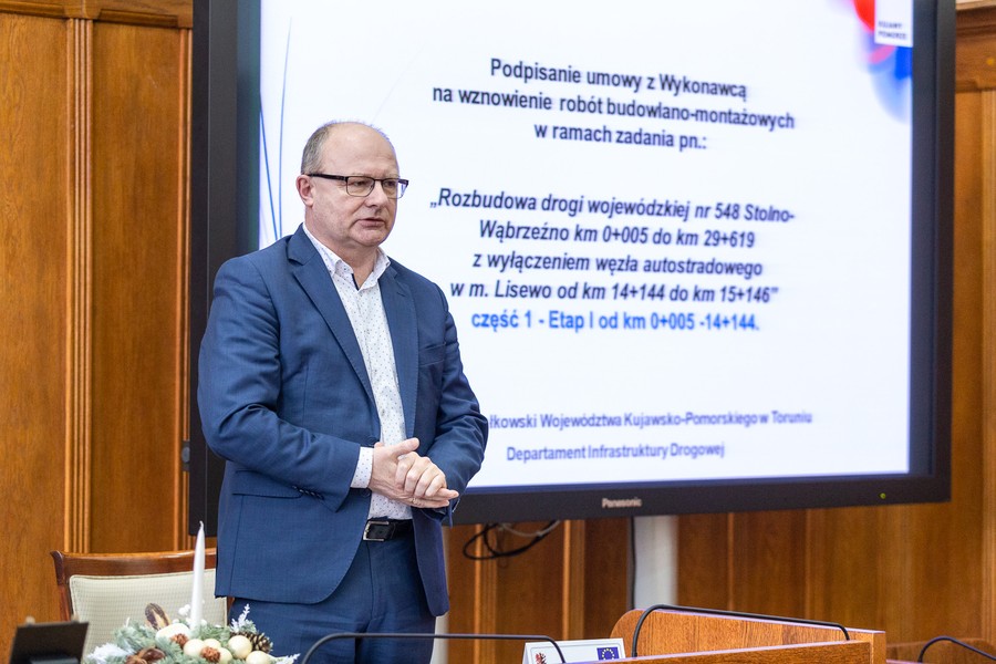 We wtorek (19 stycznia) podpisano umowę na wznowienie prac na drugim odcinku drogi wojewódzkiej nr 548, łączącej powiaty chełmiński i wąbrzeski z węzłem autostradowym w Lisewie. Przebudowa 14-kilometrowego odcinka Stolno-Lisewo pochłonie prawie 70 mln zł. Łączna wartość inwestycji, którą realizować będzie wyłonione w przetargu konsorcjum złożone z Kobylarnii SA i Mirbudu, wynosi 140 mln zł. W uroczystości uczestniczył wicemarszałek województwa Zbigniew Sosnowski.