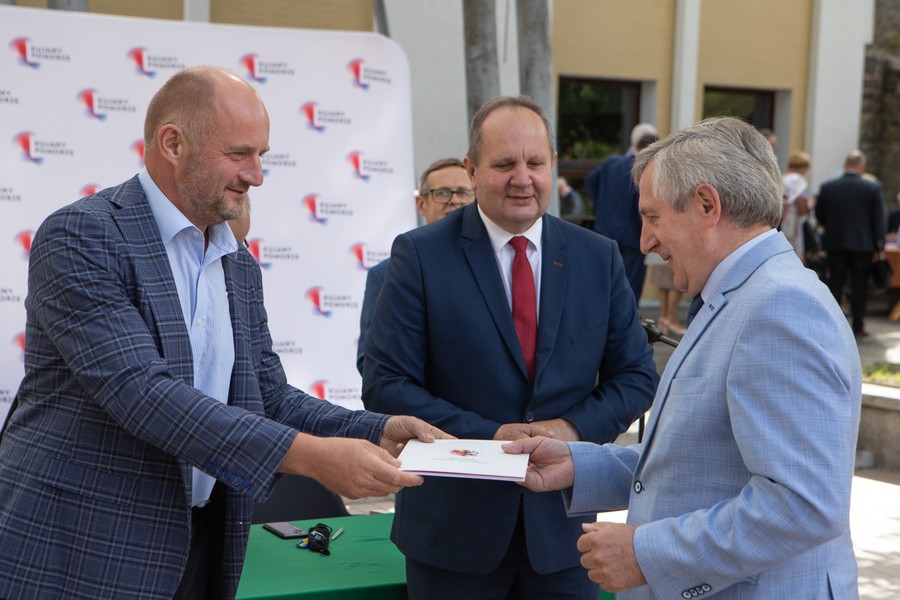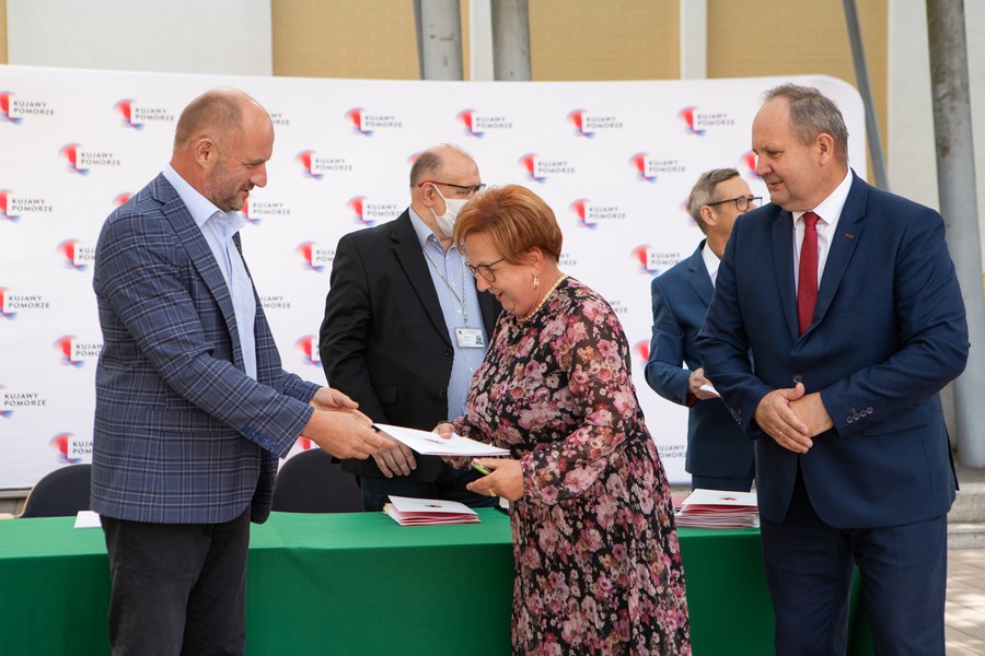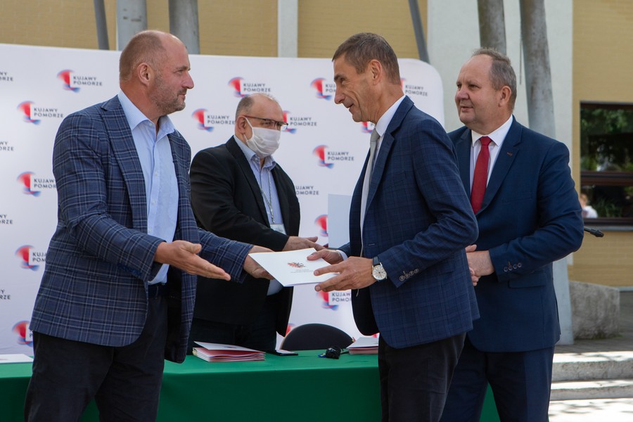 Blisko 6 milionów złotych z budżetu województwa trafi w tym roku do samorządów lokalnych na budowę i modernizację dróg dojazdowych do gruntów rolnych. Uroczyste wręczenie umów z udziałem marszałka Piotra Całbeckiego, wicemarszałka Zbigniewa Sosnowskiego i członka zarządu województwa Sławomira Kopyścia odbyło się we wtorek (7 lipca) w amfiteatrze Muzeum Etnograficznego w Toruniu.