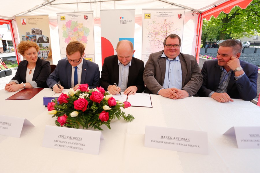 W uroczystym rozpoczęciu budowy na placu targowym przy ulicy Chełmińskiej w Lisewie uczestniczyli marszałek Piotr Całbecki, samorządcy z terenu powiatów chełmińskiego i wąbrzeskiego oraz przedstawiciele Zarządu Dróg Wojewódzkich w Bydgoszczy i firmy Trakcja PRKiI SA.