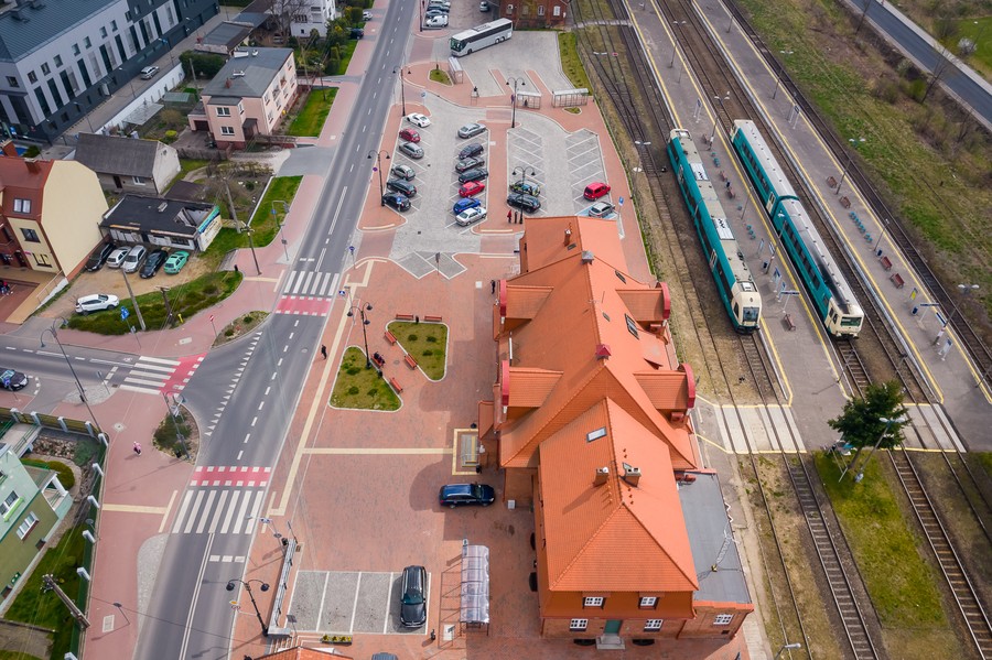 W Wąbrzeźnie władze miejskie zrewitalizowały zaniedbany wcześniej teren przydworcowy, który obecnie jest nie tylko elegancką wizytówką miejscowości i miejscem, w które nie strach zapuścić się wieczorem, ale podstawą do budowania kolejnych elementów tego, co nazywamy zintegrowaną platformą przesiadkową. Powstały tu ciąg pieszo-rowerowy, wpisujący się w sieć miejskich ścieżek rowerowych, umożliwia wygodny dojazd do dworca rowerem i bezpieczne zaparkowanie jednośladu by udać się w dalszą podróż, do pracy lub szkoły, pociągiem. Utwardzony parking pozwala zaproponować podobne rozwiązanie właścicielom aut – samochód można pozostawić na przydworcowym parkingu. Z uznaniem należy się też odnieść do uporządkowania przydworcowego skweru, na którym ustawiono nowe ławki i zamontowano nowe oświetlenie.