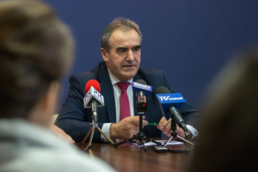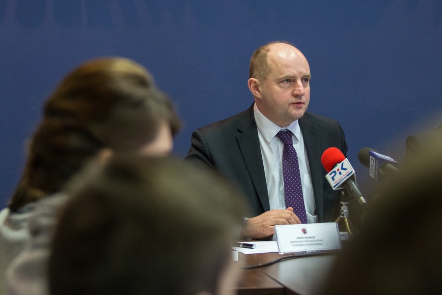 Marszałek Piotr Całbecki i przewodniczący sejmiku województwa Ryszard Bober spotkali się 15 marca z dziennikarzami by podzielić konkluzjami wynikającymi z debaty na temat sytuacji i wyzwań rozwojowych dla regionu, która odbyła się podczas nadzwyczajnej wyjazdowej sesji sejmiku we Włocławku.