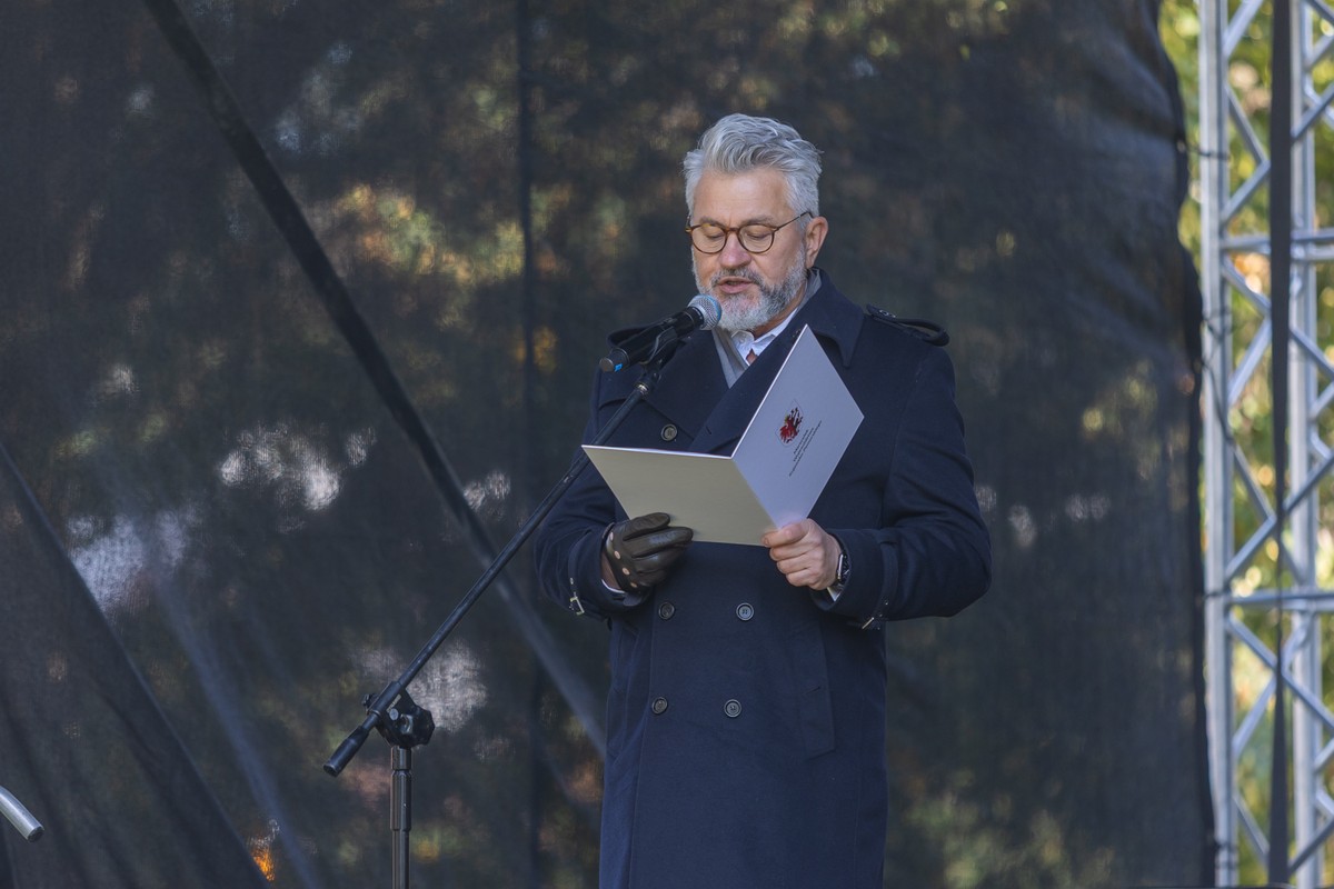 – Ofiary zbrodni pomorskiej wspominamy 2 października, w dniu urodzin dyrektora zakładu psychiatrycznego w Świeciu i jednej z ofiar tej zagłady, doktora Józefa Bednarza. Wybraliśmy tę datę na przekór śmierci, aby to miejsce stało się naszym drogowskazem na przyszłość. Tylko wtedy pomniki mają sens, jeśli przekujemy [ich symboliczny przekaz] w coś, co jest w naszych sercach i w naszych umysłach – powiedział podczas uroczystości w Parku Pamięci marszałek Piotr Całbecki.