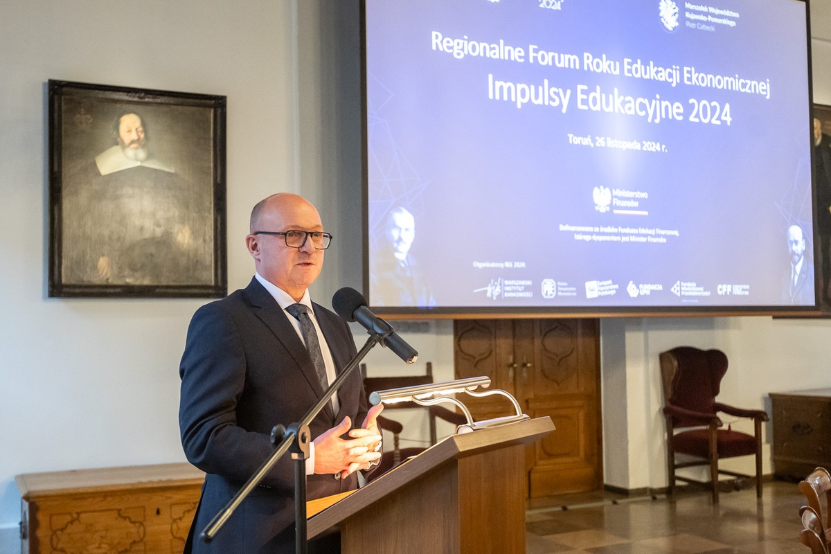Z udziałem członka zarządu województwa Marka Wojtkowskiego odbyło się we wtorek (26 listopada) w Toruniu Regionalne Forum Roku Edukacji Ekonomicznej – Impulsy Edukacyjne 2024, zorganizowane w ramach Roku Edukacji Ekonomicznej. Rozmawiano o tym, jak uczyć ekonomii w mikro- i makroskali i jak zainteresować młodych ludzi tą sferą życia społecznego.