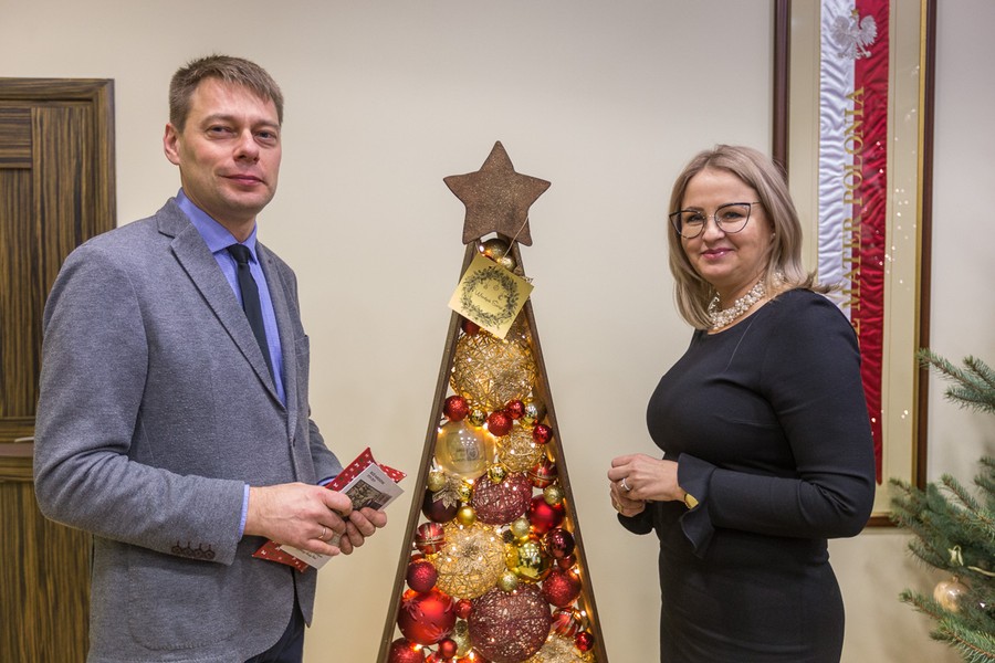 Gabinet marszałka Piotra Całbeckiego w okresie przedświątecznym ozdabia ekologiczna choinka podarowana przez Fundację Aktywizacji i Integracji z Nowego w powiecie świeckim. Jest to jeden z podmiotów ekonomii społecznej, które prężnie działają w naszym województwie.