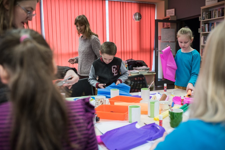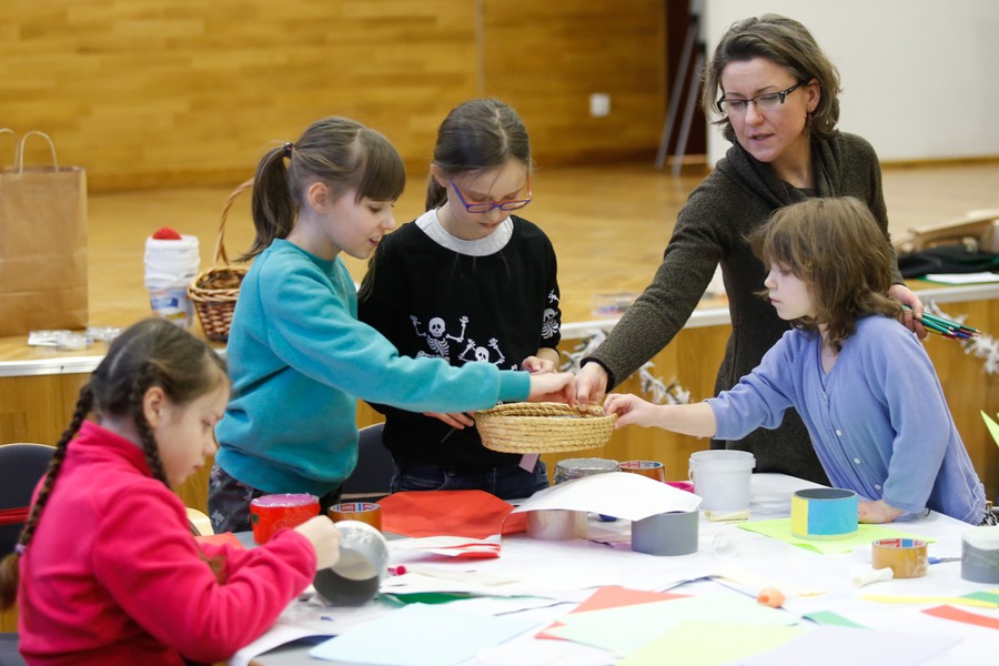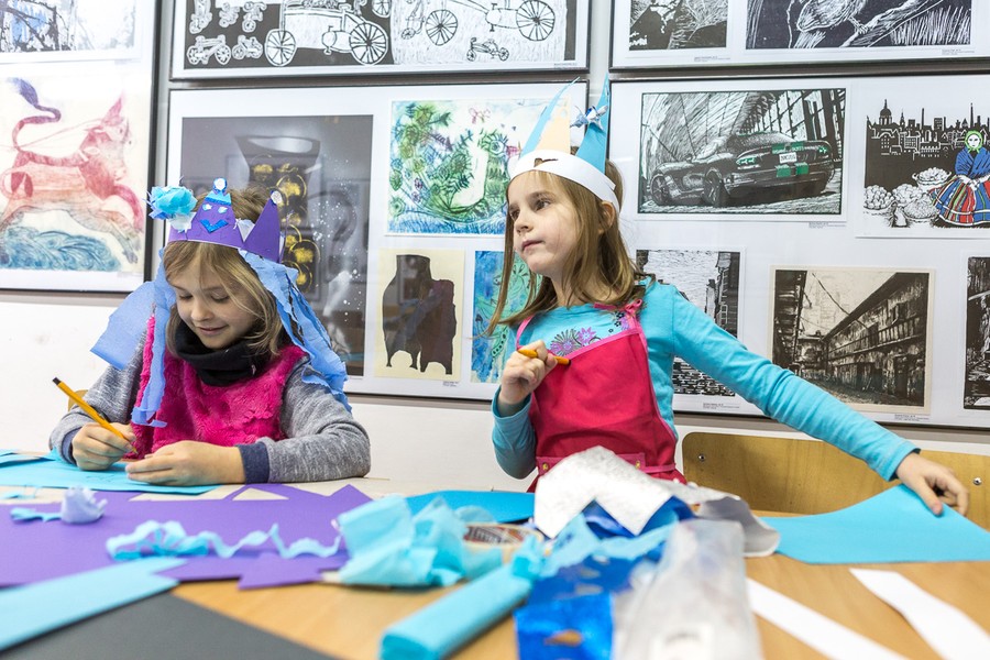 Zajęcia plastyczne „Zimowe korony” w Galerii i Ośrodku Plastycznej Twórczości Dziecka, fot. Szymon Zdziebło/tarantoga.pl