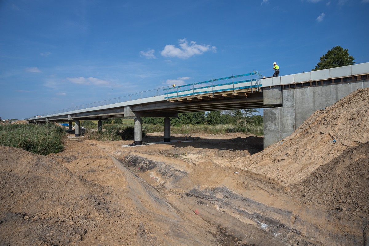 Gotowy jest również most na Zgłowiączce pomiędzy miejscowościami Borek i Brzezina. To pięcioprzęsłowy obiekt o długości blisko 140 metrów. Wykonawca zamontował bariery i zabezpiecza skarpy przyczółków. Do końca roku planuje także umocnić brzegi rzeki w obrębie mostu. Poza tym cała droga zostanie odpowiednio oznakowana i wyposażona w elementy poprawiające bezpieczeństwo. Zrealizowany zostanie także zielony zakres inwestycji związany z nasadzeniami drzew, krzewów oraz zakładaniem trawników. Zakończenie wszystkich robót planowane jest do końca roku.