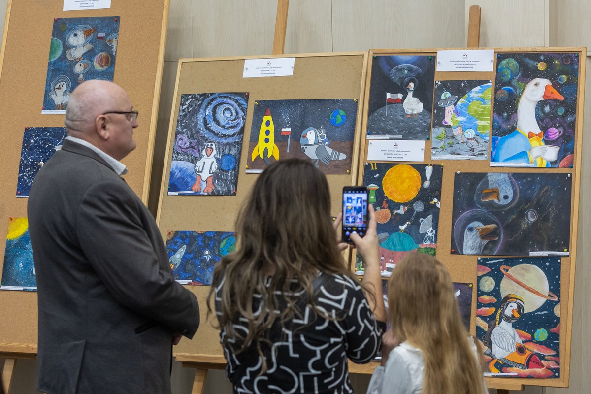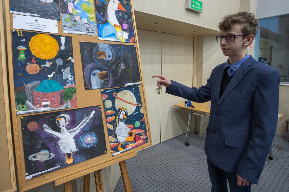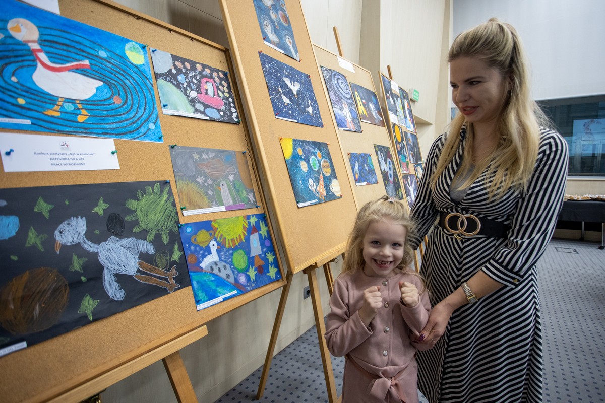 Temat gęsinowego konkursu plastycznego miał związek z przypadającą w tym roku 550. rocznicą urodzin Mikołaja Kopernika Otrzymaliśmy kilkaset prac, najwięcej w kategorii wiekowej 7-ll lat. Najmłodszy uczestnik konkursu miał zaledwie 2,5 roku, najstarszy-18 lat.