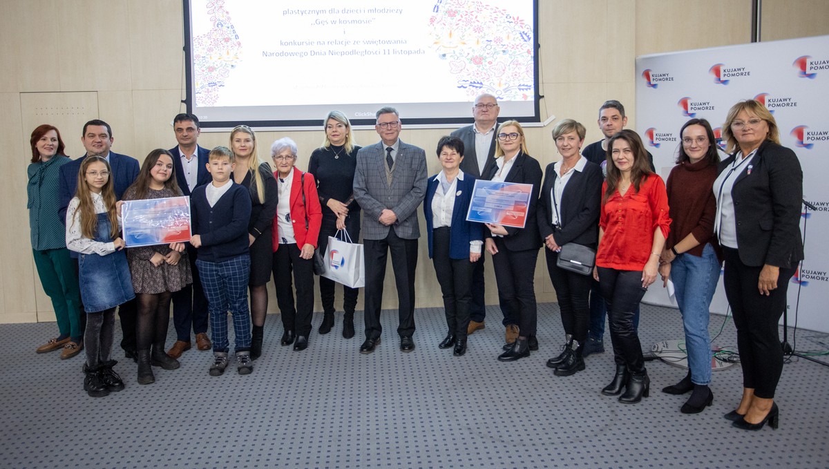 Nagrodziliśmy laureatów marszałkowskich konkursów w ramach tegorocznej ,,Kujawsko-Pomorskiej gęsiny na świętego Marcina”. We wtorek (12 grudnia) w Urzędzie Marszałkowskim spotkali się nagrodzeni i wyróżnieni w konkursie plastycznym ,,Gęś w kosmosie” oraz na relacje ze wspólnego świętowania w dniu Narodowego Święta Niepodległości.