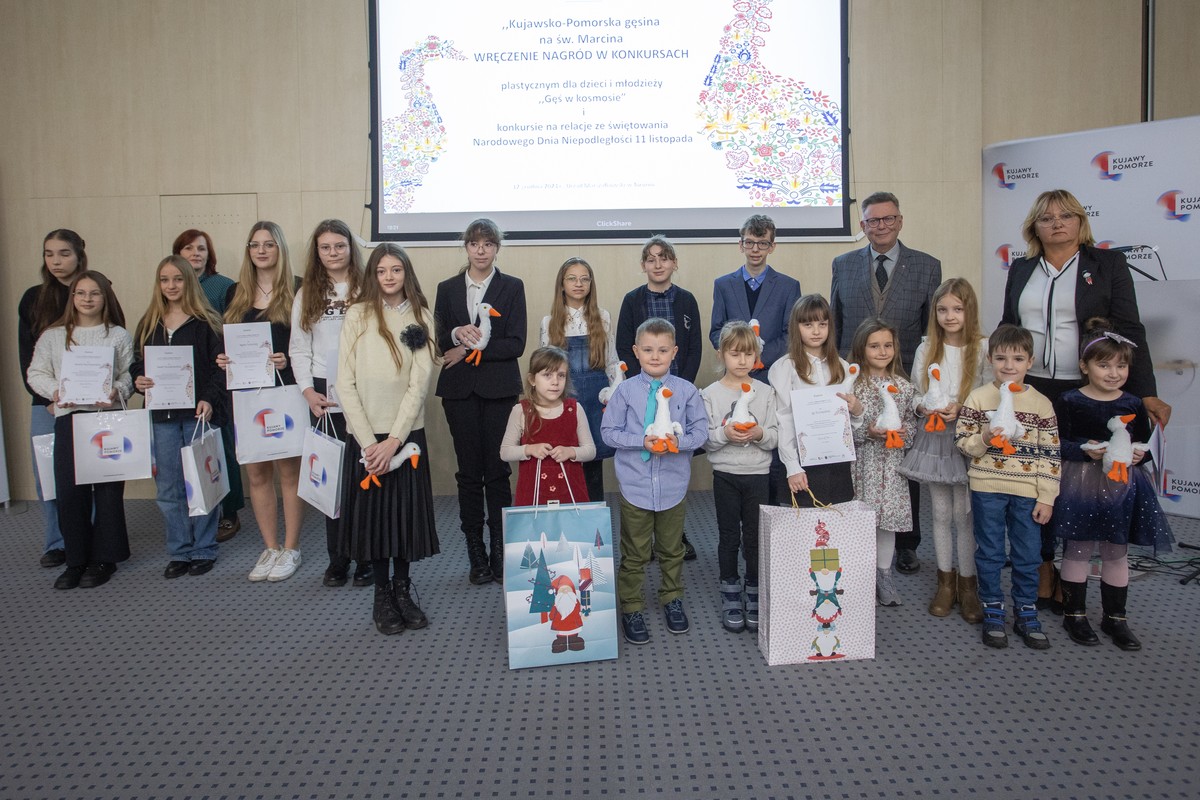 - Wręczenie nagród w plastycznym konkursie gęsinowym. Fot. Mikołaj Kuras dla UMWKP