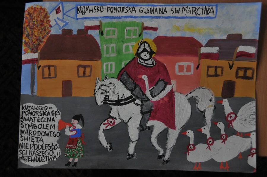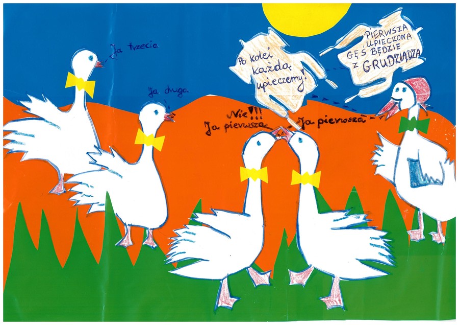 W dziecięcych gęsinowych konkursach plastycznych co roku otrzymujemy setki prac, wykonywanych przez najmłodszych mieszkańców ze wszystkich zakątków województwa. Młodzi artyści wykonują je w najróżniejszych technikach, z użyciem kredek, farb, piór, ziaren, folii, różnego rodzaju materiałów tekstylnych, krepy, bibuły, styropianu, wstążek, brokatu i wielu innych. W tym roku spodziewamy się prac, które połączą tematycznie gęsi i bogactwo turystyczne Kujaw i Pomorza. O zwycięzcach z lat poprzednich pisaliśmy tutaj, tutaj i tutaj.