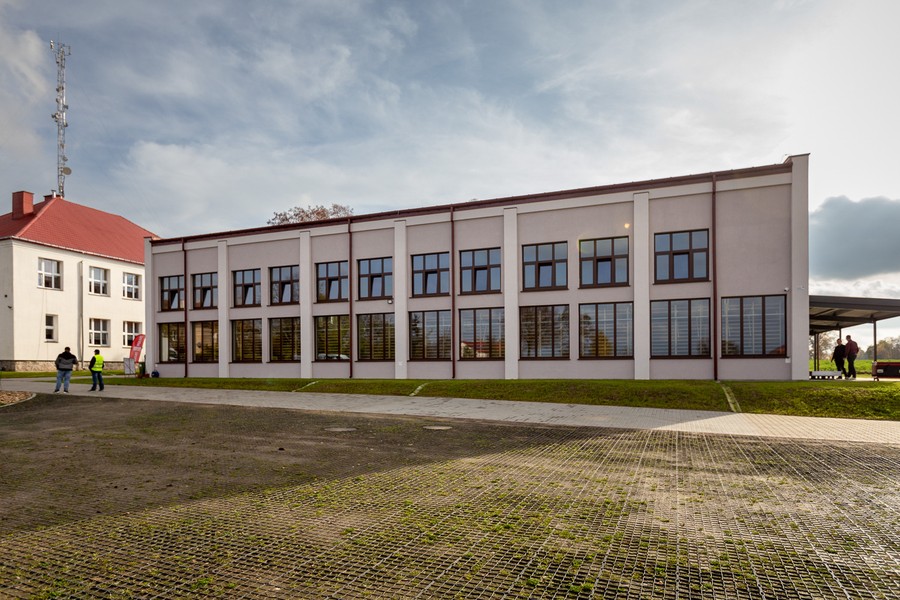 Szkoła nie posiadała dotychczas sali sportowej, a zajęcia wychowania fizycznego odbywały się w świetlicy lub na szkolnym korytarzu. Nowy obiekt to dwukondygnacyjny budynek z parterowym łącznikiem. Na parterze znajdują się duża sala gimnastyczna, która umożliwia jednoczesne prowadzenie zajęć dla dwóch grup klasowych, zaplecze magazynowe, pokój nauczycielski i toalety. Piętro zajmują szatnie i balkon, z którego można oglądać zawody sportowe. Projekt obejmował także zagospodarowanie terenu wokół obiektu. Powstały parking, wiaty rowerowe i elementy małej architektury, gruntownie zmodernizowana została kotłownia.