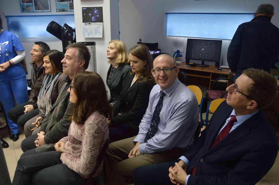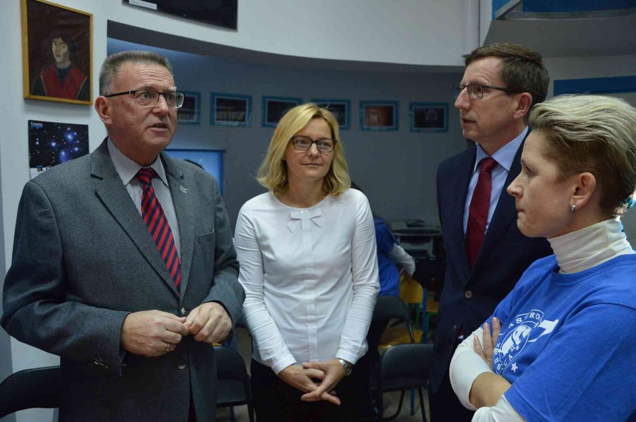 Z gośćmi w kruszwickiej Astrobazie spotkał się wicemarszałek Zbigniew Ostrowski, który opowiedział o wsparciu jakiego samorząd województwa udziela placówkom startującym w konkursach i biorącym udział w projektach, jak np. w złożonym ostatnio do Ministerstwa Nauki i Szkolnictwa Wyższego projekcie pn. „Od Astrobazy do Obserwatorium Astronomicznego”, w którym weźmie udział młodzież z dziewięciu astrobaz, w tym także z kruszwickiej placówki. Celem wspomnianego projektu jest wykorzystanie możliwości obserwacyjnych astrobaz na potrzeby prostych projektów naukowych (fotometrycznych i astrometrycznych), które będą miały na celu upowszechnienie badań i tematyki naukowej podejmowanej w Centrum Astronomii UMK. Za realizację zadania będzie odpowiadać Fundacja Aleksandra Jabłońskiego (FAJ) wraz z Wydziałem Fizyki, Astronomii i Informatyki Stosowanej (WFAiIS) Uniwersytetu Mikołaja Kopernika w Toruniu. Partnerem zadania będzie Wydział Innowacyjnych Projektów Edukacyjnych Urzędu Marszałkowskiego w Toruniu. Projekt obejmie docelowo 75 odbiorców: 54 uczniów z dziewięciu Astrobaz i 21 nauczycieli – koordynatorów. Nabór uczniów prowadzony będzie w pierwszej połowie 2018 roku.