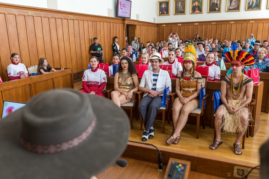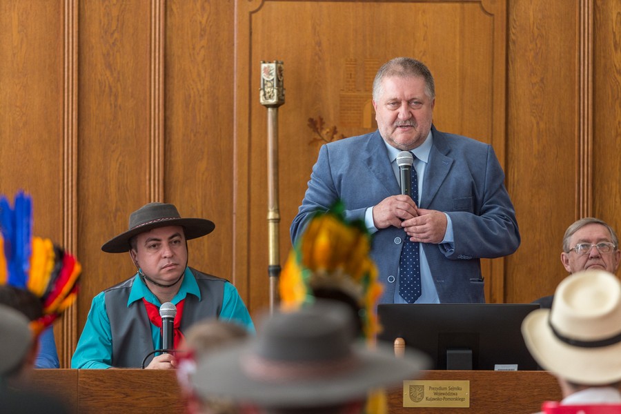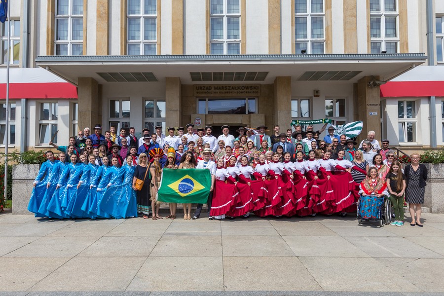 W Urzędzie Marszałkowskim gościliśmy w poniedziałek (15 lipca) dwie muzyczne grupy Polonii brazylijskiej: członków Zespołu Pieśni i Tańca „Wisła” z Kurytyby oraz Polską Grupę Ludową „Karolinka” z Sao Mateus do Sul. Z naszymi gośćmi spotkał się członek zarządu województwa Sławomir Kopyść. Artyści swoje umiejętności zaprezentowali na Starym Rybnku w Toruniu oraz na placu przed Filharmonią Pomorską w Bydgoszczy.