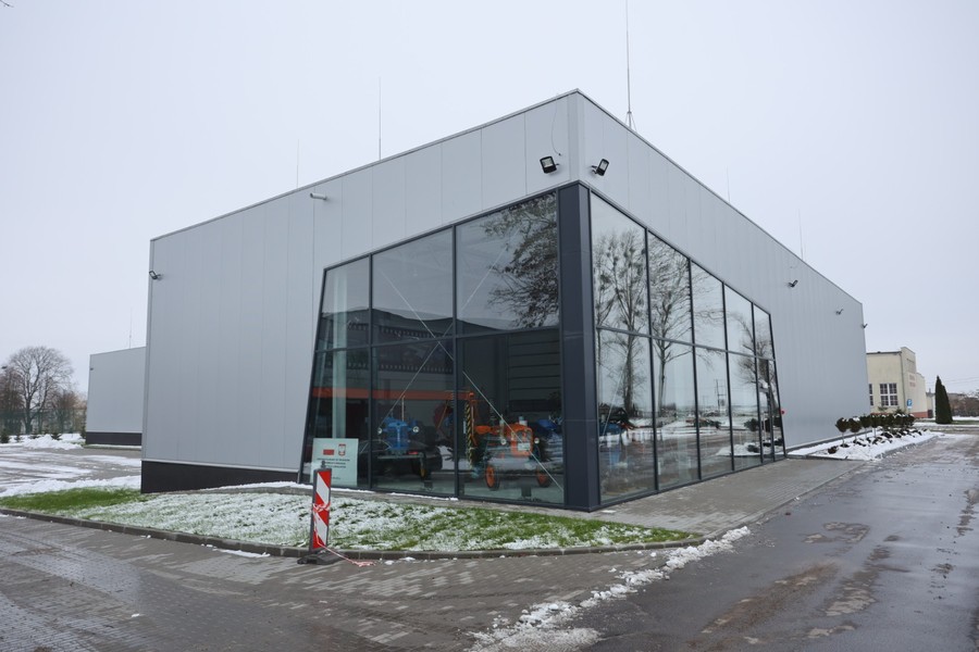 Zbudowana na miejscu starego obiektu o podobnym przeznaczeniu hala maszyn rolniczych, nawiązująca stylistycznie do architektury hali sportowej, mieści garaże na stanowiące wyposażenie szkoły nowoczesne i w wielu przypadkach bardzo drogie maszyny rolnicze, m.in. kombajny i ciągniki. Pod tym samym dachem zainstalowano też Muzeum Techniki Rolniczej.