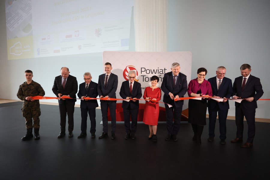 Marszałek Piotr Całbecki uczestniczył 23 stycznia w uroczystości otwarcia nowo powstałej nowoczesnej pracowni agrotroniki oraz nowo wybudowanej hali sportowej i nowej hali maszyn rolniczych w Centrum Kształcenia Ustawicznego w Gronowie. Rozbudowę i modernizację kompleksu szkolnego oraz zakupy sprzętu dla pracowni agrotroniki umożliwiły środki samorządu województwa i budżetu państwa, a także pieniądze europejskie z puli naszego Regionalnego Programu Operacyjnego 2014-2020.