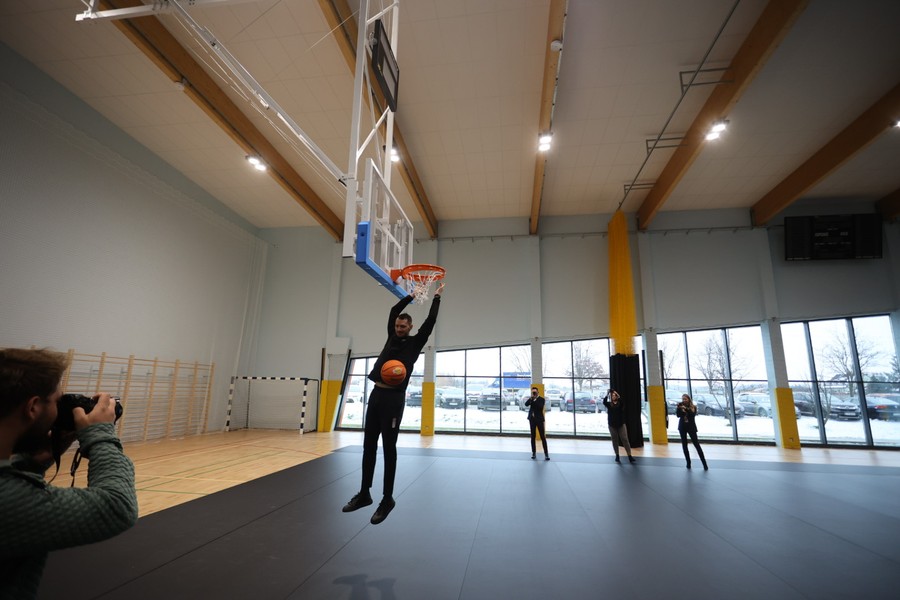 Interesująca pod względem architektonicznym hala sportowa z widownią posiada pełnowymiarowe boiska do siatkówki i koszykówki oraz siłownię i salę fitness. System ogrzewania jest w pełni ekologiczny, oparty o kaskadowo połączone pompy ciepła, dodatkowo na dachu została umieszczona instalacja fotowoltaiczna. Będą z niej korzystać nie tylko uczniowie i kadra placówki, ale także mieszkańcy Gronowa.