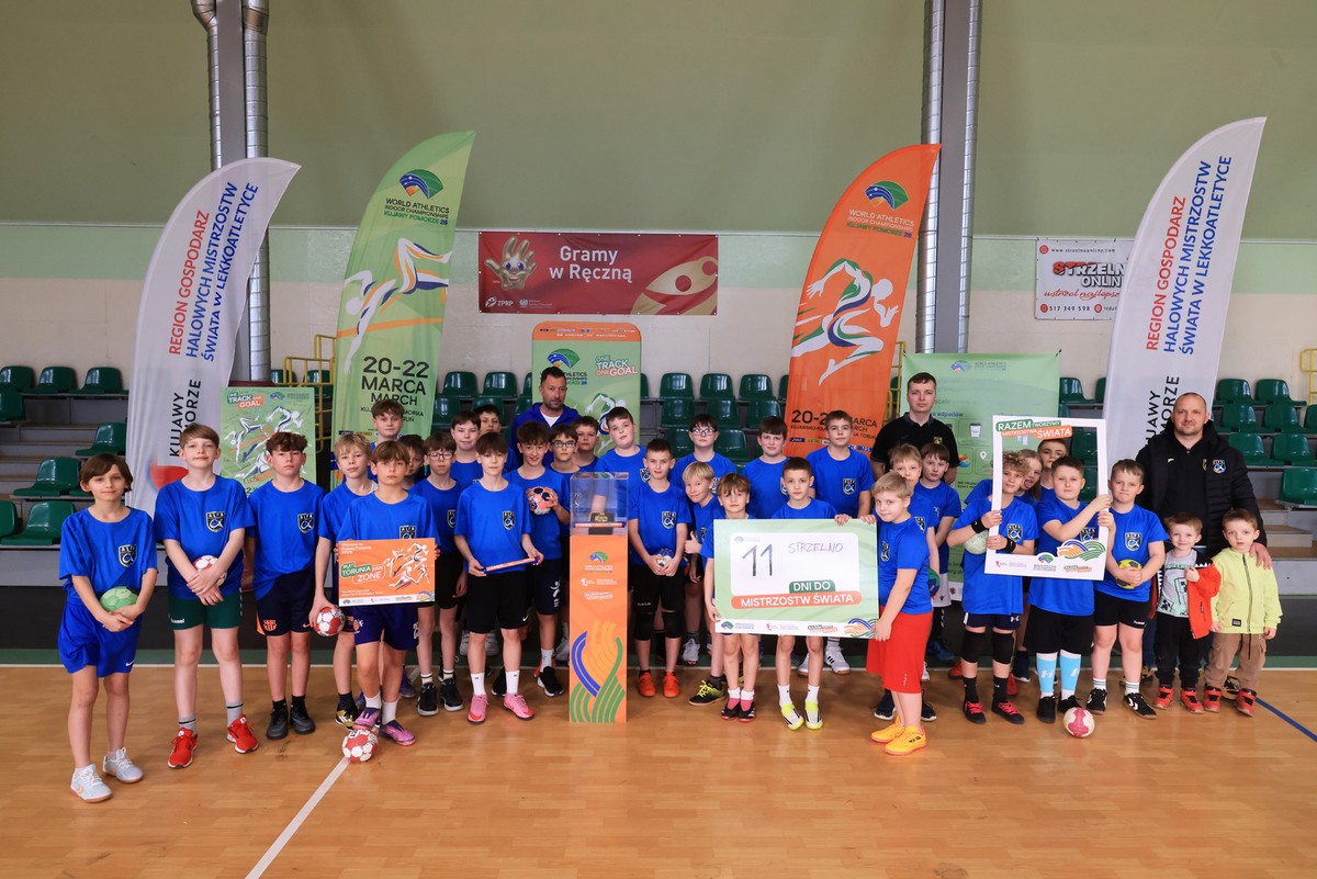 Rozpoczynamy wielkie odliczanie! Do Halowych Mistrzostw Świata Kujawy Pomorze 26 pozostało tylko 10 dni! Wczoraj (9 marca) nasza sztafeta gościła na parkiecie UKS Alfa 99 w Strzelnie. Było dużo biegania, rzutów do bramki i prawdziwej sportowej pasji. Dziś (10 marca) odwiedzimy Sępólno Krajeńskie i spotkamy się z zawodnikami podczas treningu podnoszenia ciężarów. HMŚ Kujawy Pomorze 26