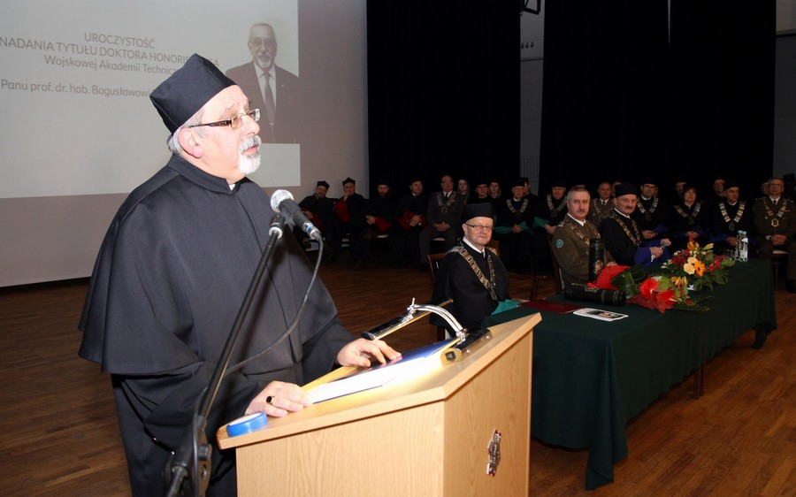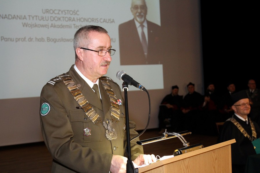 – Działalność naukowo-badawcza, jaką prowadzi profesor Bogusław Buszewski od ponad 40 lat, dotyczy zagadnień interdyscyplinarnych. (…) Ta interdyscyplinarność w wykonaniu pana profesora ma jeden nadrzędny cel: możliwość przeprowadzenia rozpoznania chemicznego cząsteczek na drodze metod separacyjnych (chromatografii, technik elektromigracyjnych). Siłą sprawczą i napędową jest dla pana profesora wiedza uzyskana w trakcie badań podstawowych, które zawsze były dla niego impulsem do praktycznych opracowań służących wydzielaniu, wzbogacaniu, rozdzielaniu i oznaczaniu różnych indywiduów w skomplikowanych mieszaninach. Drugim ważnym argumentem inspirującym profesora do podjęcia badań była chemia komórki. Obejmuje ona nie tylko chemię środowiska i biotechnologię, ale także chemię medyczną, farmaceutyczną i toksykologię. [Naukowcy z WAT] wielokrotnie doświadczyli jego pomocy i życzliwości na ścieżce rozwoju naukowego i we współpracy badawczej – mówił w wygłoszonej podczas uroczystości laudacji promotor doktoratu, prof. Krzysztof Czupryński.