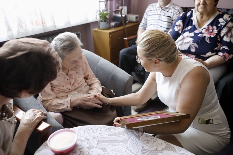 Pani Józefie medal wręczyli członkowie zarządu województwa Aneta Jędrzejewska i Sławomir Kopyść. Pani Klara odebrała medal z rąk członek zarządu Anety Jędrzejewskiej.