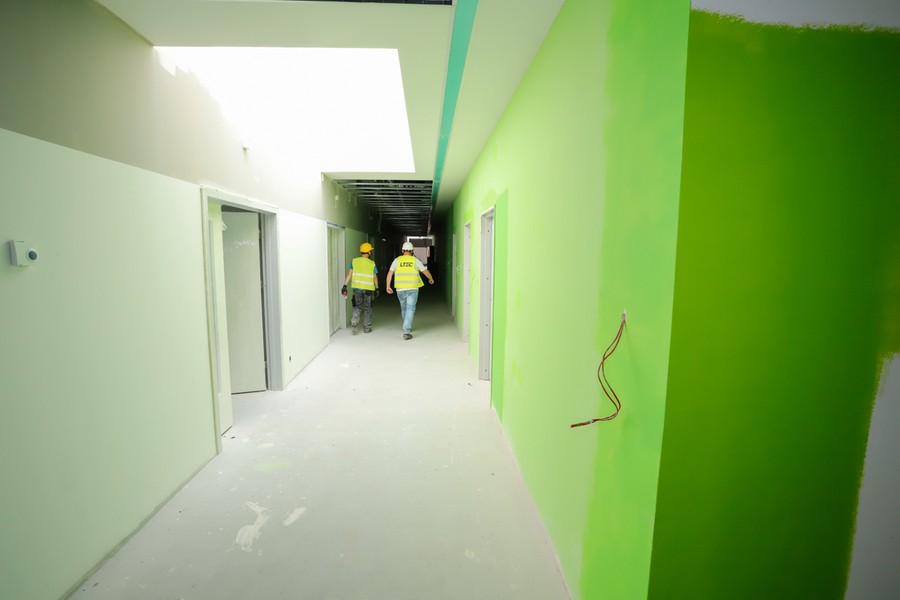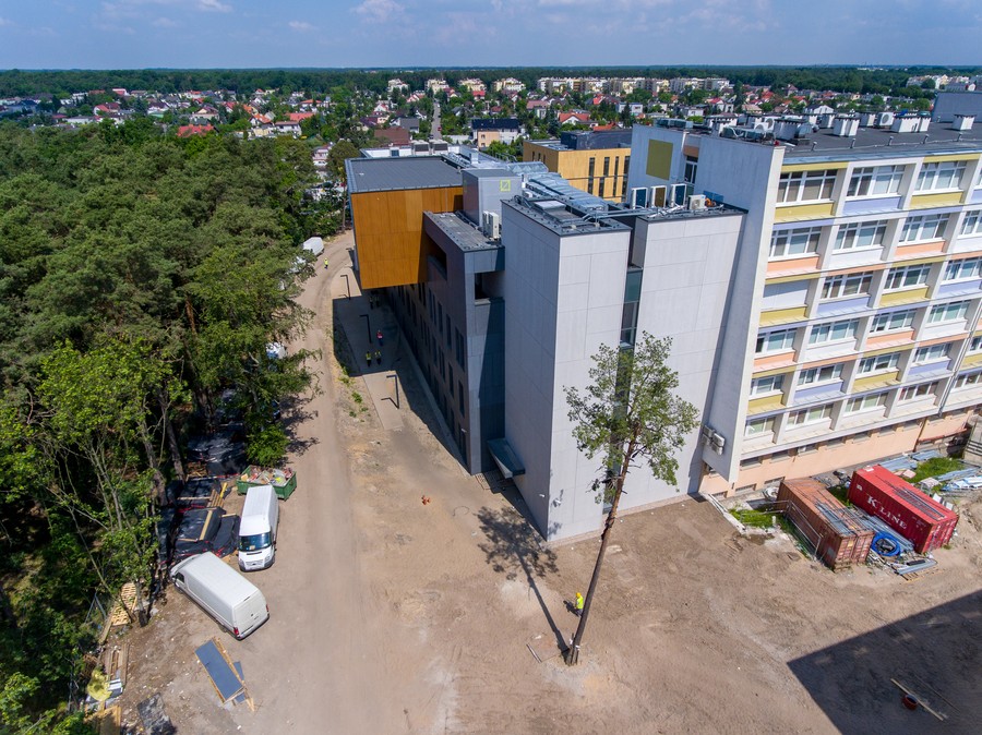 – Bryły wszystkich nowych budynków już stoją, ekipy specjalistów prowadzą obecnie prace tynkarskie i malarskie, układanie podłóg i montaż ścian działowych. W nowym budynku głównym montowane są meble i sprzęt medyczny wymagające wbudowania, trwają też finalne prace przy płycie umieszczonego na dachu lądowiska helikopterów medycznych. W budynku apteki robi się ostatnie poprawki wykończeniowe, a fachowcy pracują nad robotem aptecznym (szpitalna apteka będzie w pełni zautomatyzowana). Pawilony przeznaczone dla oddziałów zakaźnych i przychodni przyszpitalnych oraz oddziałów psychiatrycznych są na etapie zaawansowanych prac wykończeniowych – mówi marszałek Piotr Całbecki.