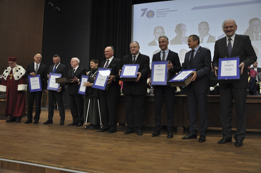 Po raz pierwszy wręczone zostaną także tytuły Ambasadora UMK przyznawane znanym absolwentom wspierającym uczelnię. Wśród wyróżnionych tym tytułem znaleźli się marszałek Piotr Całbecki i wicemarszałek Zbigniew Ostrowski, a także Michał Jagodziński, Grzegorz Karpiński, Janina Ochojska, Stanisław Rakowicz, Anna Sobecka, Wojciech Sobieszak, Janusz Leon Wiśniewski, Maciej Wiśniewski, Tomasz Zaboklicki oraz Michał Zaleski.