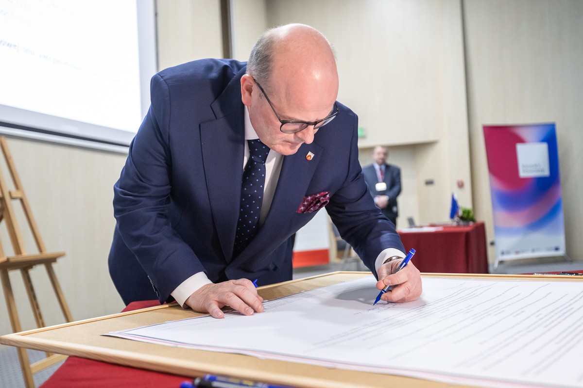 - Podpisanie deklaracji w sprawie kolei dużych prędkości, fot. Szymon Zdziebło/tarantoga.pl dla UMWKP