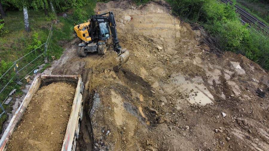 Nowy wiadukt w Terespolu Pomorskim powstaje w miejscu starego. Wykonawca, spółka Marbro z Gdańska, rozebrał już stary obiekt i zrealizował część robót ziemnych, które umożliwiły wjazd palownicy – sprzętu do wzmocnienia gruntu pod nowe przyczółki. Równocześnie w zakładzie wykonawcy powstają stalowe elementy konstrukcji nowego pomostu. Będą on zespalane na placu budowy, co usprawni kolejny etap inwestycji.