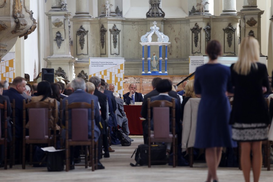 Drugie posiedzenie Komitetu Monitorującego Regionalny Program Operacyjny Województwa Kujawsko-Pomorskiego 2014-2020 odbyło się 8 czerwca w Chełmnie. Gremium obradowało w kościele Świętych Apostołów Piotra i Pawła, w którym środki z naszego RPO umożliwiły prace remontowo-konserwatorskie związane z adaptacją świątyni na potrzeby Muzeum Sztuki Sakralnej Ziemi Chełmińskiej.